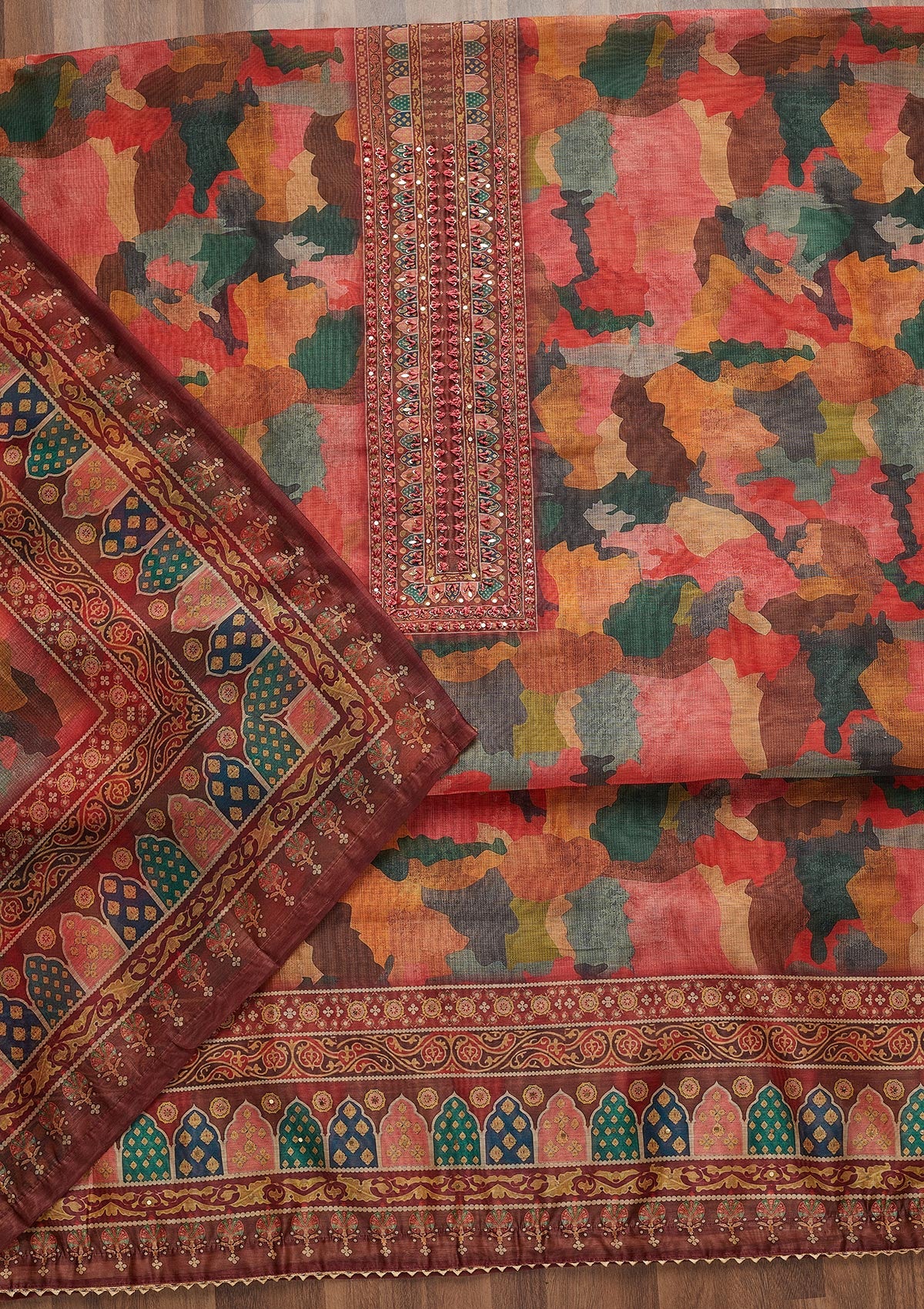 – Bottle Green Unstitched Salwar Suit in chanderi fabric